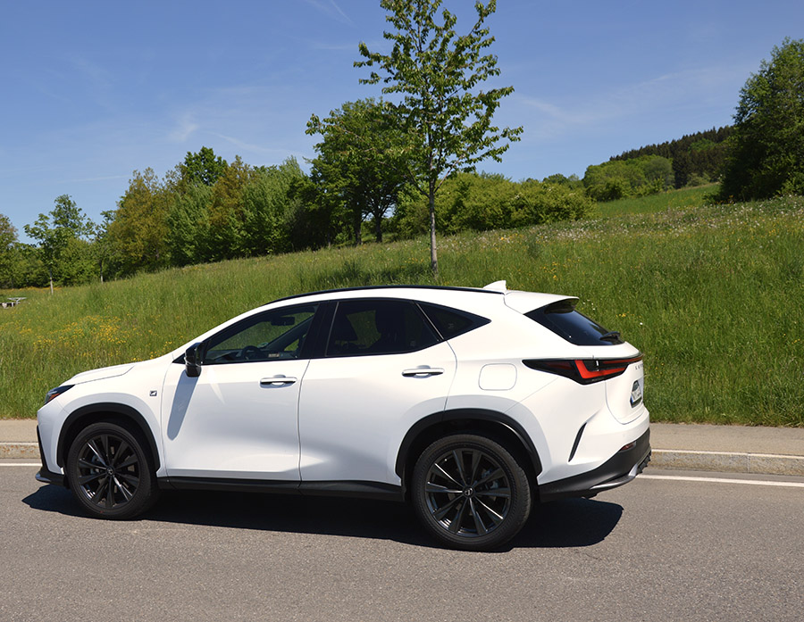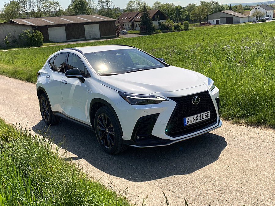 Den NX gibt es seit 2015, Zeit also für Neues. Seit Anfang des Jahres rollt nun die zweite Generation des japanischen SUV NX auf hiesigen Straßen, erstmals als Plug-in-Hybrid NX450h+ mit 309 PS (227 kW) Systemleistung. Wir fuhren den Vierzylinder mit schwarzen Ledersitzen in der F Sport Ausstattung in der edel anmutenden Farbe fuijiweiß glass flake.